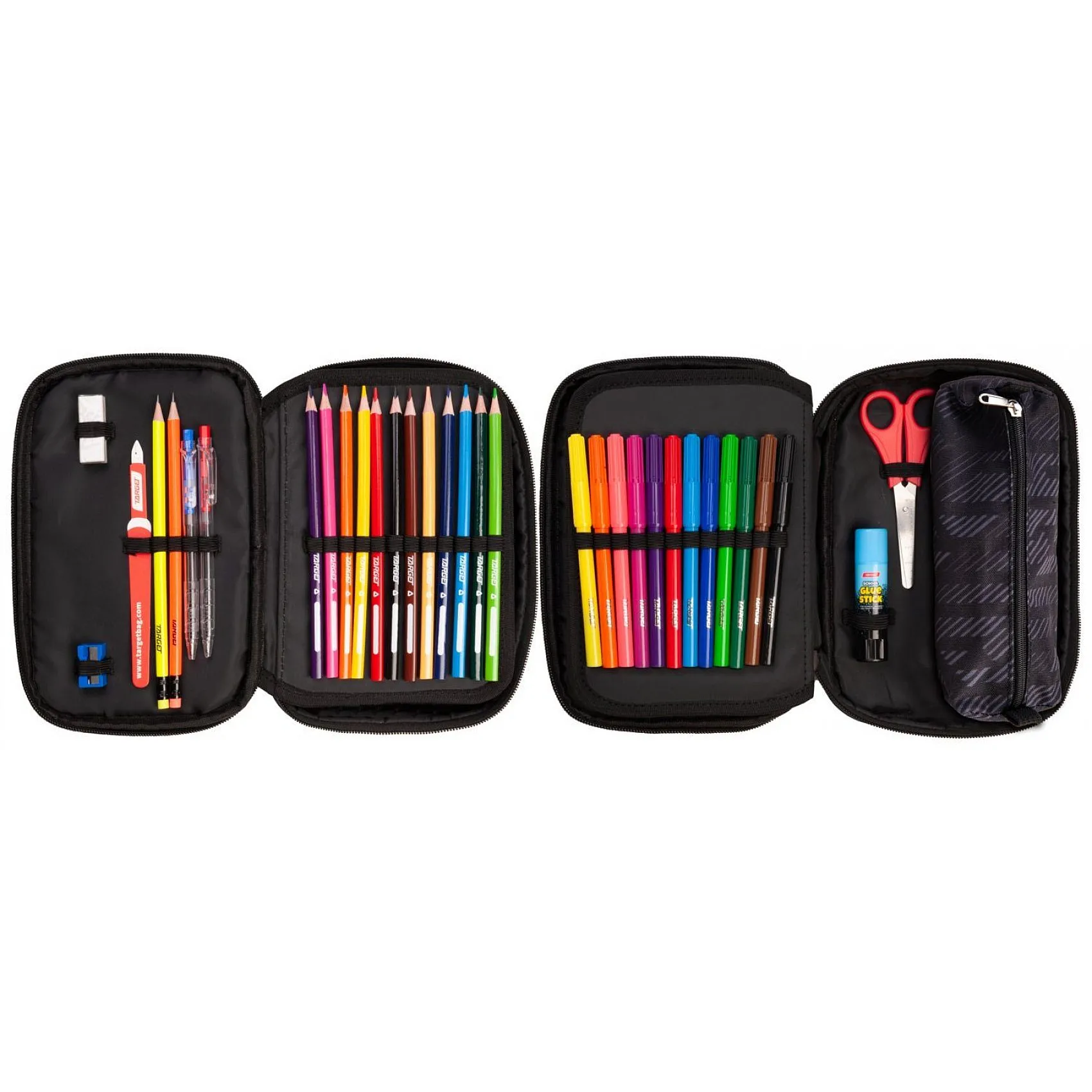 Puna olovka renomiranog brenda Target koja sadrži sve potrepštine iz olovke koje su djetetu potrebne u školi. Olovka ima jedan patentni zatvarač koji se dalje otvara jer je knjiga pri ruci i ne zauzima previše mjesta u torbi.
