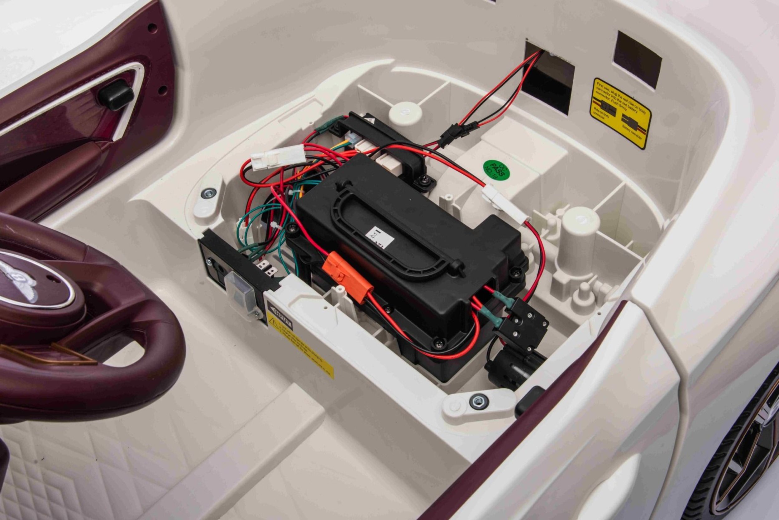 Pozabite na težke in nerodne akumulatorje. Ta 11V Bentley Bacalar, 2x25W, električni avtomobil za otroke uporablja napredno Li-Ion tehnologijo. Litijeva baterija ne le podaljša čas igranja, temveč zaradi manjše teže omogoča motorjema 2x25W, da iztisneta maksimalno odzivnost na vsakem terenu.