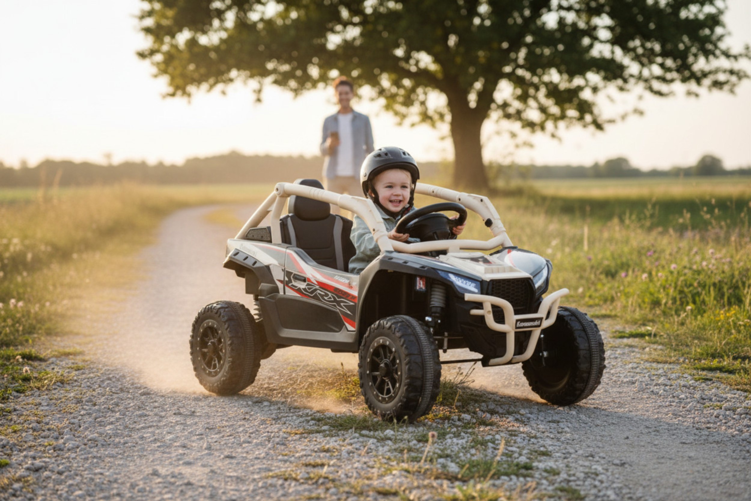 Pripravite se na terensko avanturo z licenciranim modelom Kawasaki Teryx KRX 1000. Ta vrhunski avto na akumulator v khaki barvi prinaša neustrašen videz pravega buggyja neposredno v roke vašega malega voznika. Združuje moč, varnost in detajle, ki bodo navdušili vsakega ljubitelja off-road vožnje.